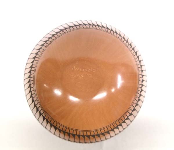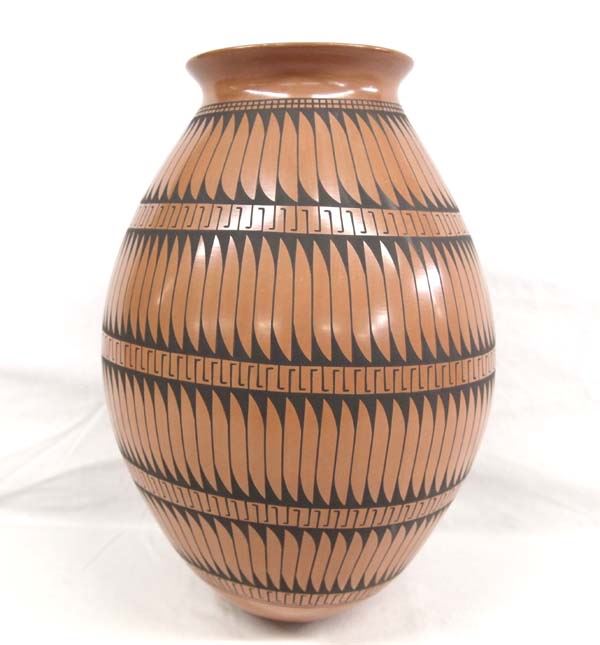 Stunning Mata Ortiz Stylized Feather Jar by Armando Silveira, measures 12''H x 9''W, signed on bottom by artist