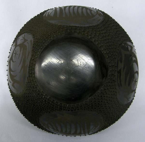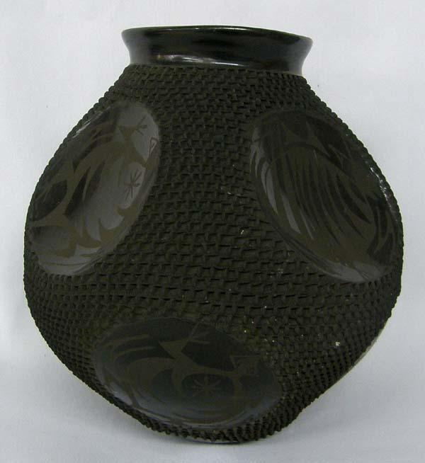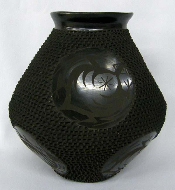 Mata Ortiz Textured Indented Pot by J. Gonzalez. Measures approx. 9''Hx9''W. Buyers Pay Actual Shipping and Handling Charges(see terms and conditions for more information).