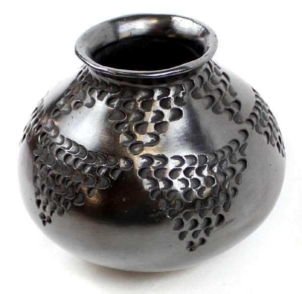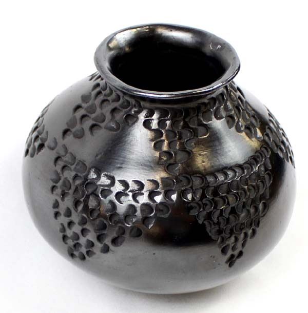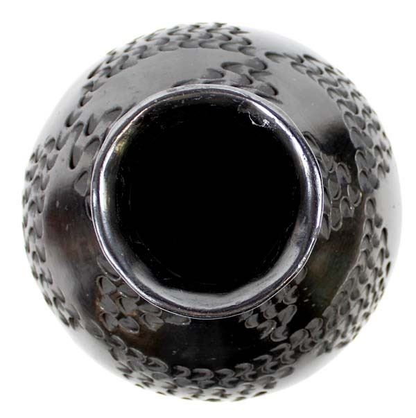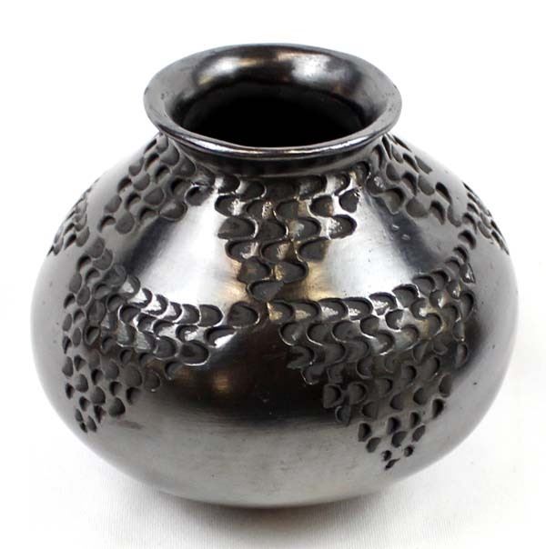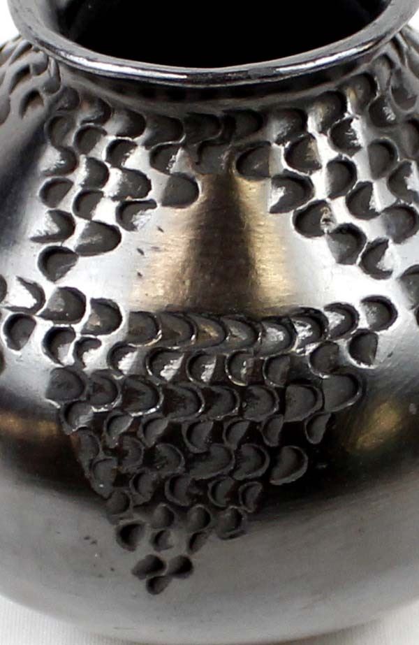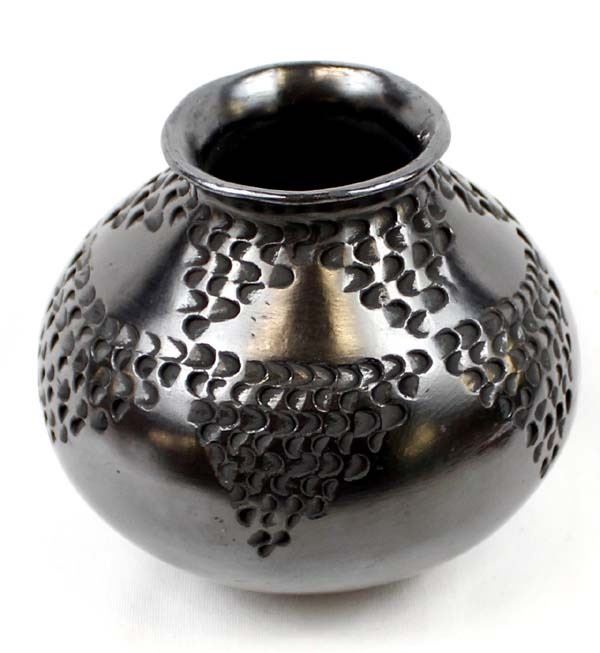 Vintage Mata Ortiz Textured Blackware Pottery Jar by Dora Quezada, small scuffed area on bottom, measures 4.5'' x 5.5'' and is signed on the bottom, FYI: ''Dora Quezada is a member of the famous Quezada family, daughter of Nicholas and niece of Juan Quezada.''