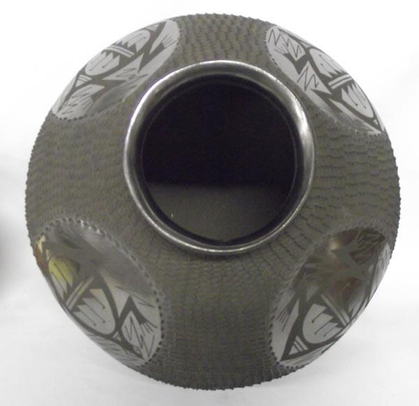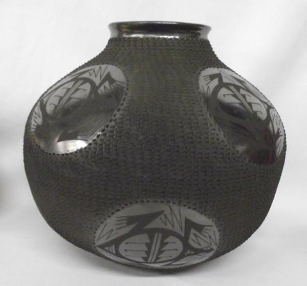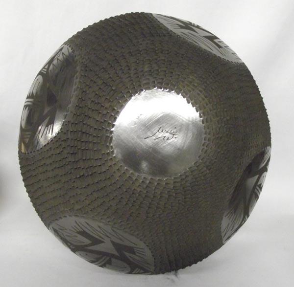 Large Museum Quality Mata Ortiz Black on Black Highly Burnished Textured Turtle Olla by Lucie Soto, measures approx. 14''Diameter x 13''H. Buyers Pay Actual Shipping and Handling Charges(see terms and conditions for more information)