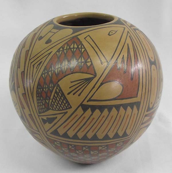 Mata Ortiz Traditional Pottery By San B. Measures approx. 6 1/2''H x 7''W. Buyers Pay Actual Shipping and Handling Charges(see terms and conditions for more information).