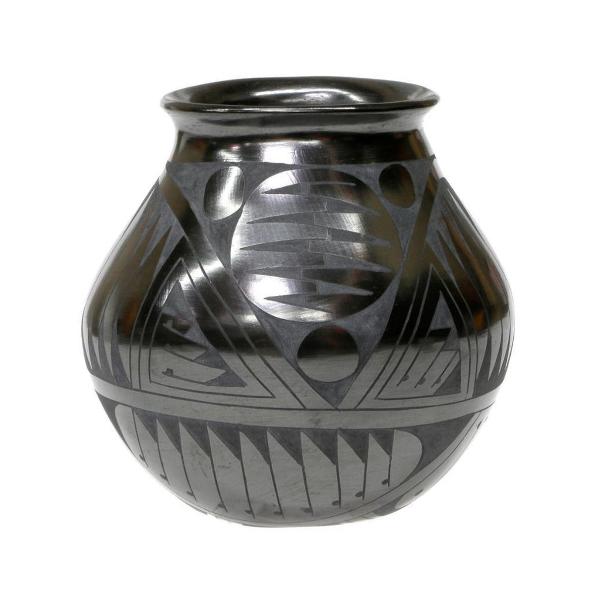Mata Ortiz; black jar by unknown potter identified as "I,S" on jar