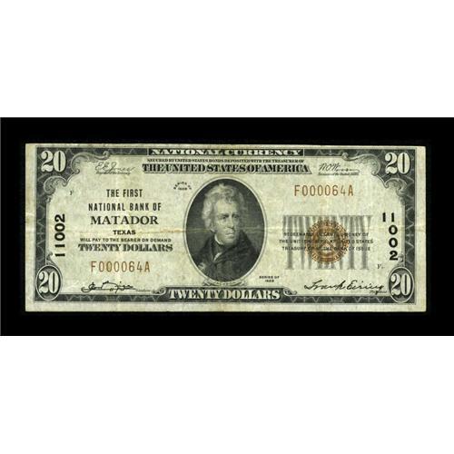 Matador, TX - $20 1929 Ty. 1 The First NB Ch. # 11002A