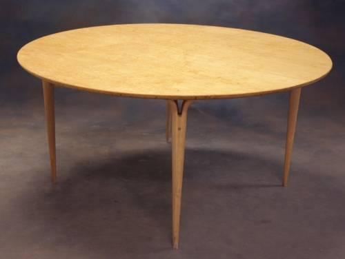 Matbord masurbjörk Bruno Mathsson för Karl Mathsson 1961 H 72 diameter 150 mindre fanérlagning