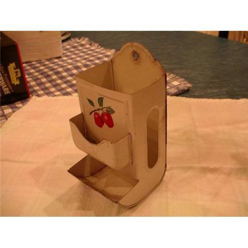 Old tin match holder with apples. Very good condition with only a little rust, mostly on back as can be seen in photos.