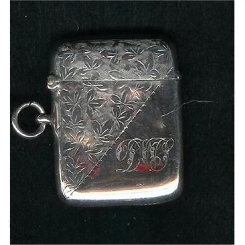 Measuring2" X 1.1/4" this English Vesta or match safe bears hallmarks for Birmingham 1906.It is chased with indecipherable initials.