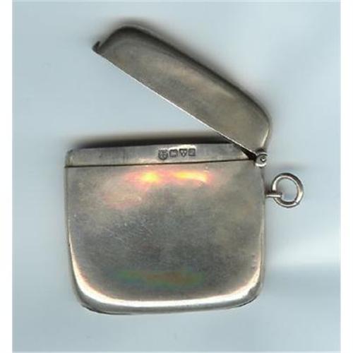 Hallmarked Chester 1915. This English Vesta/Match Safe measures 2" X 2". Side ring to hang from a watch chain.