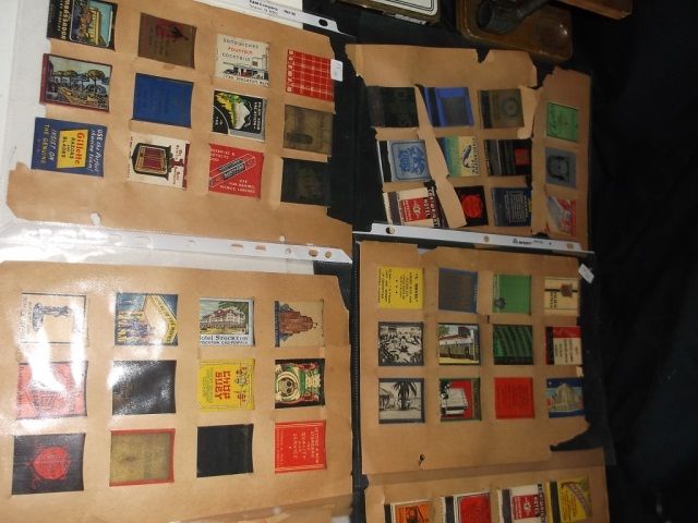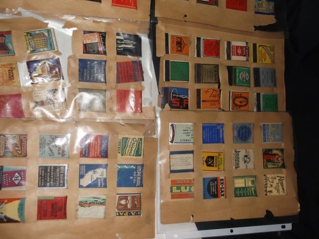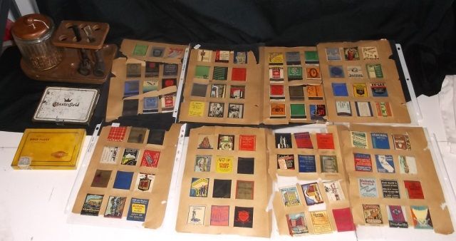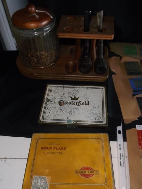 Pipe Stand with Tobacco Jar and Two Pipes and Matchbook Covers