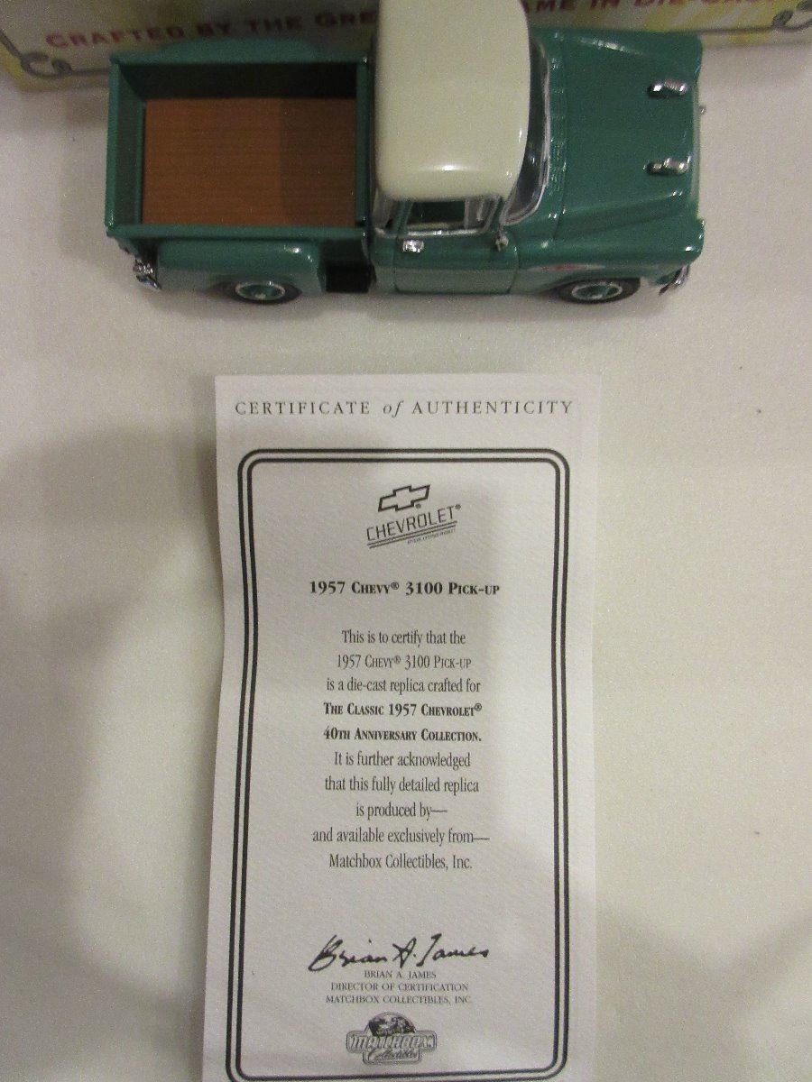 1:43 Matchbox 1957 Chevy 3100 Pick-up from the Classic 1957 Chevrolet 40th Anniversary Collection in box with certificate : 1939 Reo with box no certificate