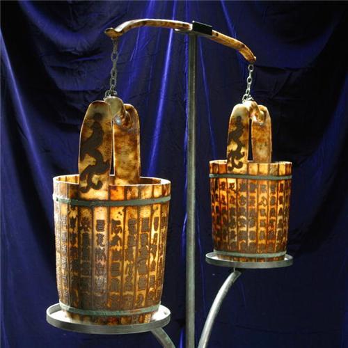 RARE Find Matched Emperor's water carrier WITH MATCHING BOW. THe custom stand was made to hold the pair. They DO NOT leak there are No cracks this is an estate item that has been in one family many years. This would be a beautiful Planter or a Silk Flower Presentation. PRICELESS