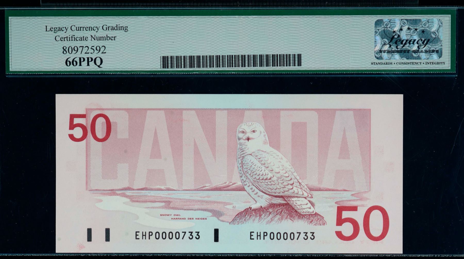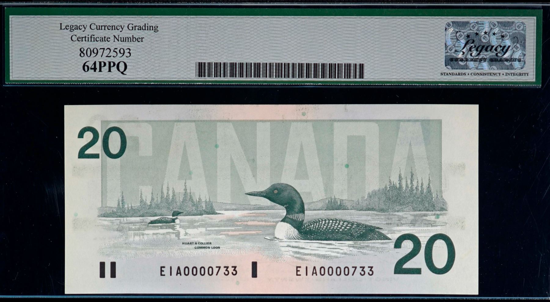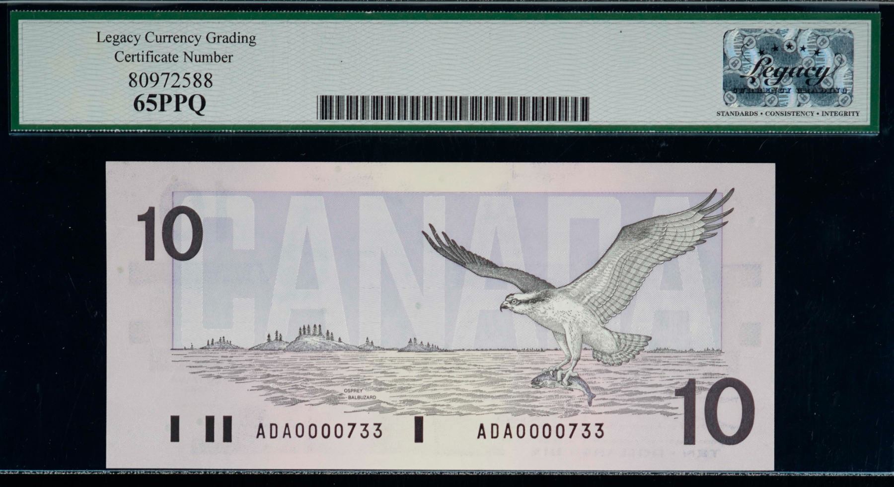 Matched Low Serial Numbered Set; Bird series 1986-1991 $5 to $100 - 7 note set! #0000733, all Legacy graded Choice Uncirculated-64 to Superb Gem Uncirculated-67PPQ.- Very attractive and desirable "Low number matching Set" seldom seen and offered.