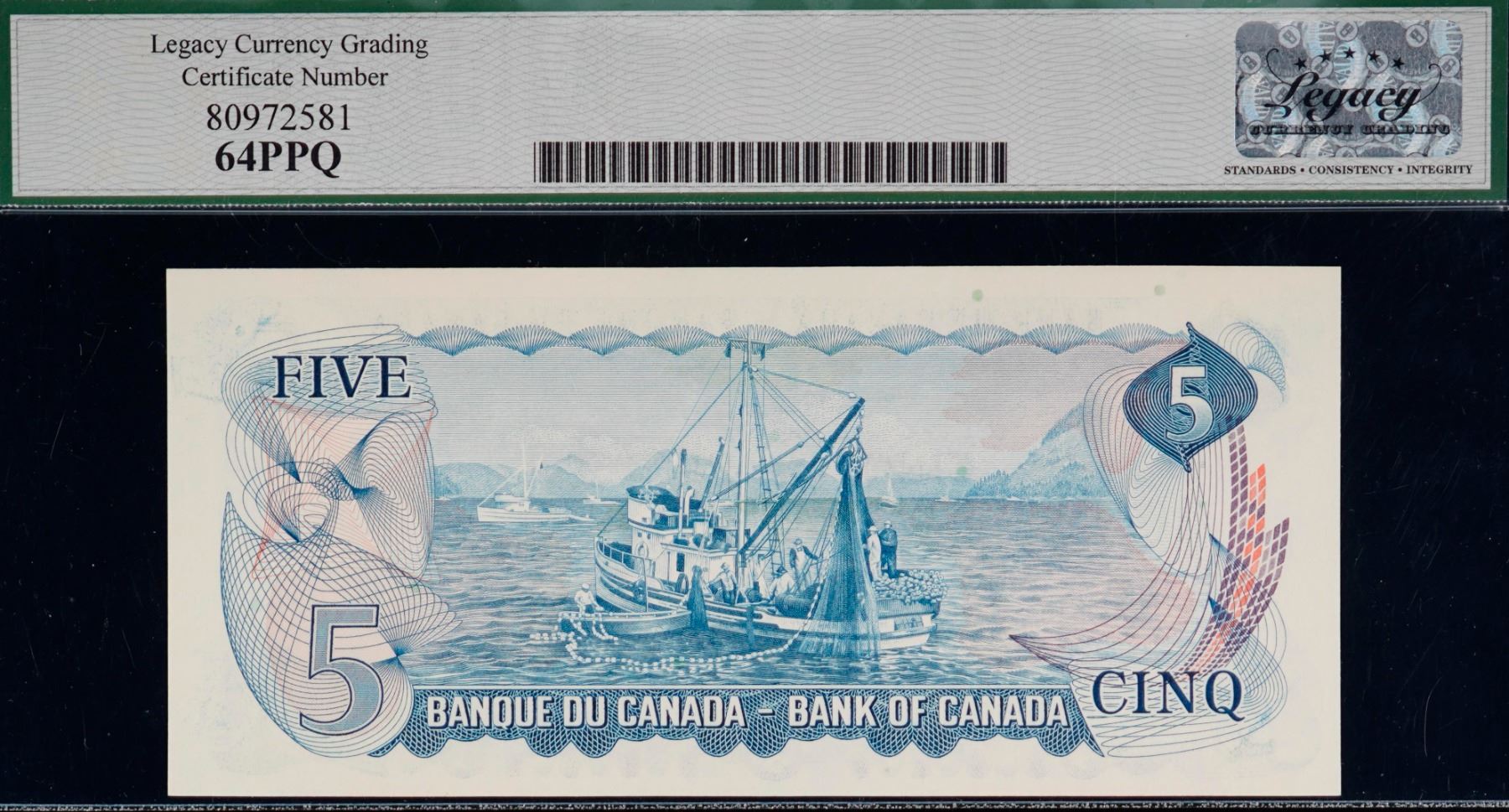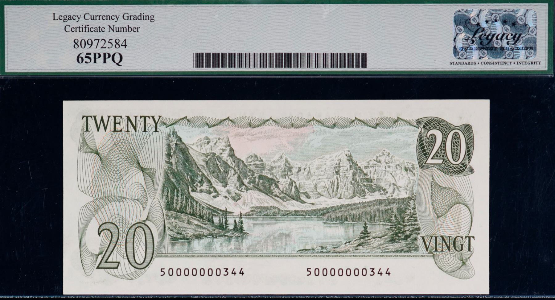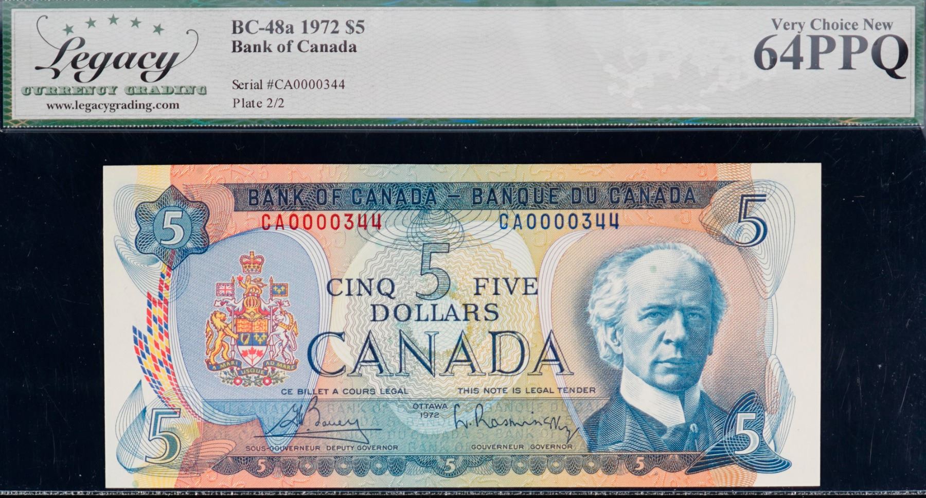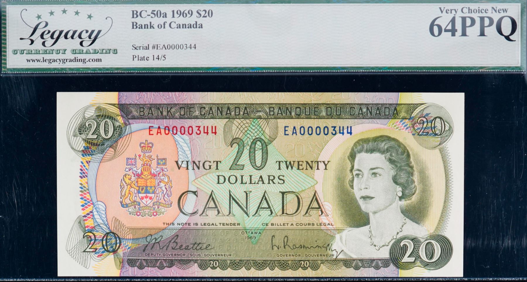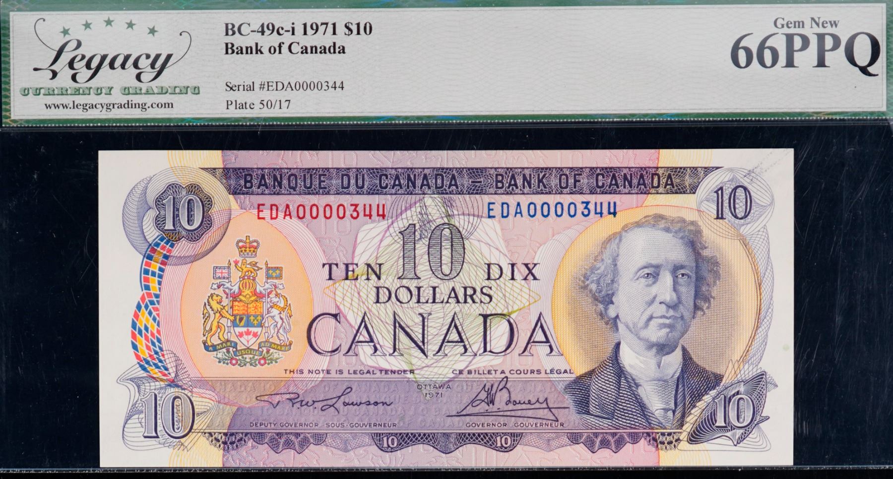 Matched Low Serial Numbered Set; Multi-colour series 1969-1979 - 8 note set! $5 to $100 #0000344, all Legacy graded Choice Uncirculated-64 to Superb Gem Uncirculated-66PPQ. Very attractive and desirable "Low number matching Set" seldom seen and offered.