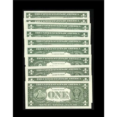 Matched Serial Number $1 Green Seals.Two sets Fr.1900-I Matched Serial Number $1 Green Seals.