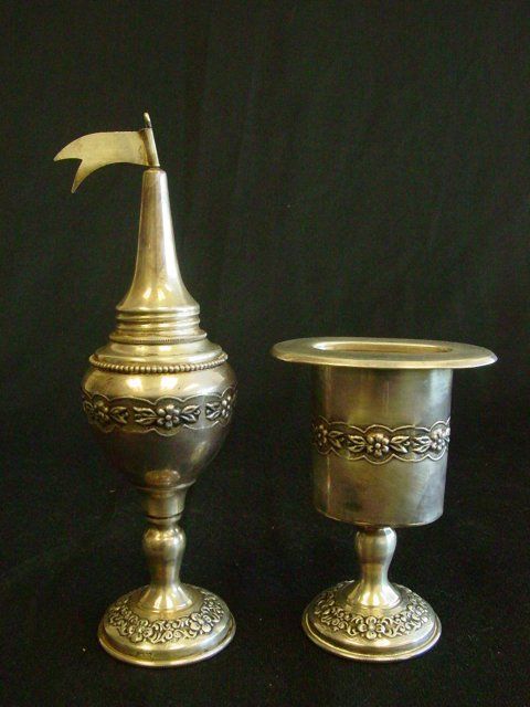Spice box & candleholder, stamped 825. Please read our terms of sale.