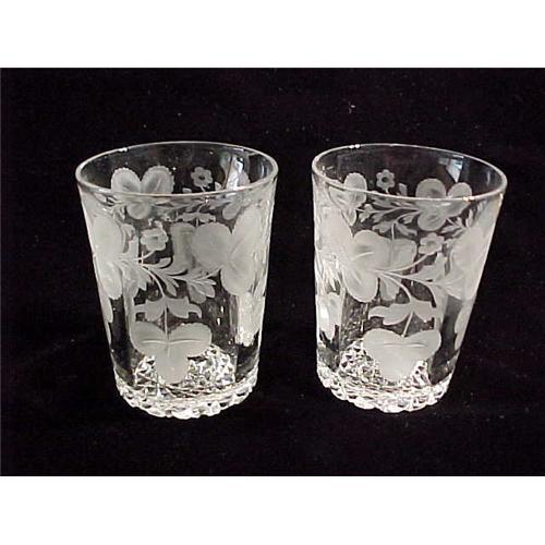 <tr><td>Title:Matching Pair Gravic Cut Glass Tumblers</td></tr>