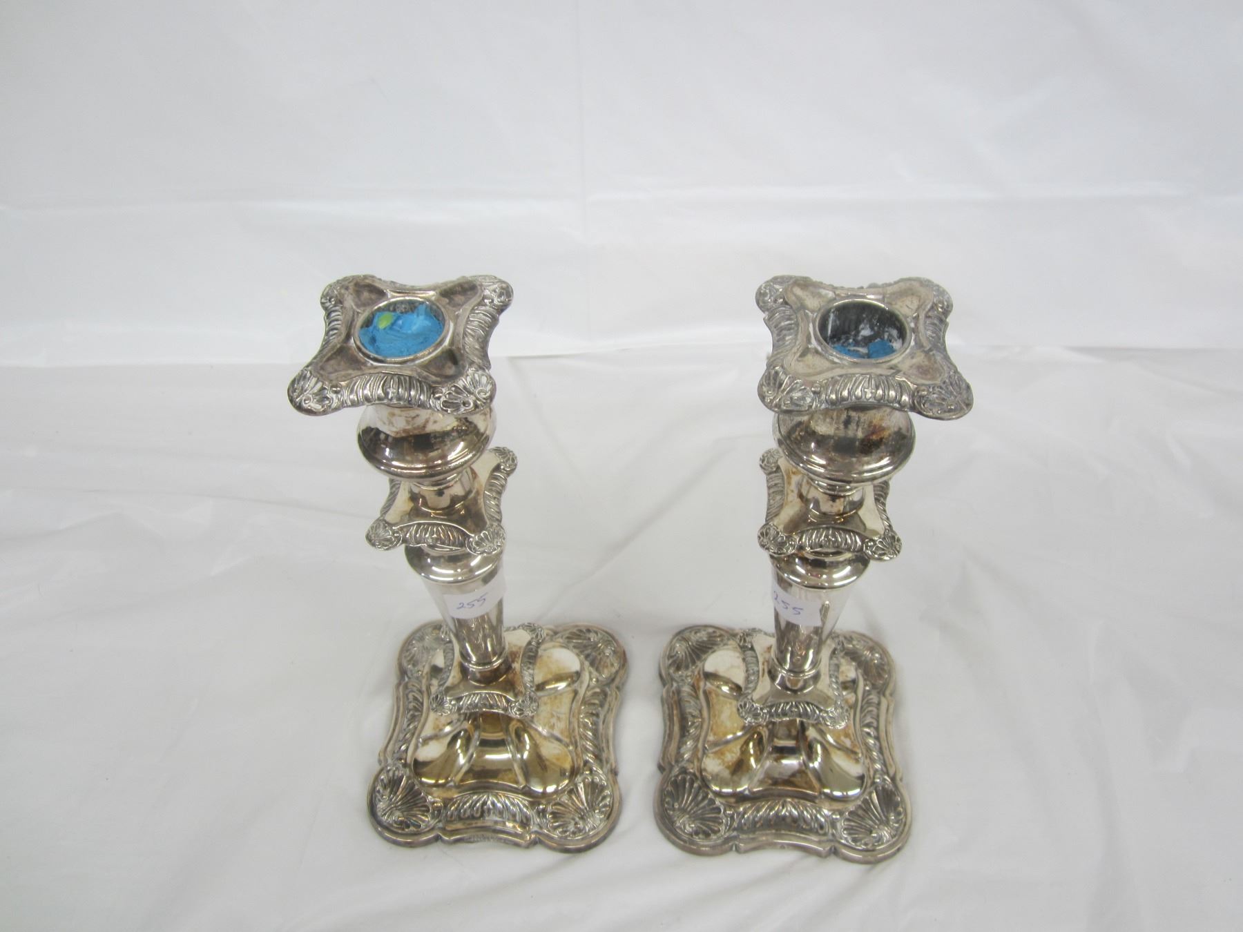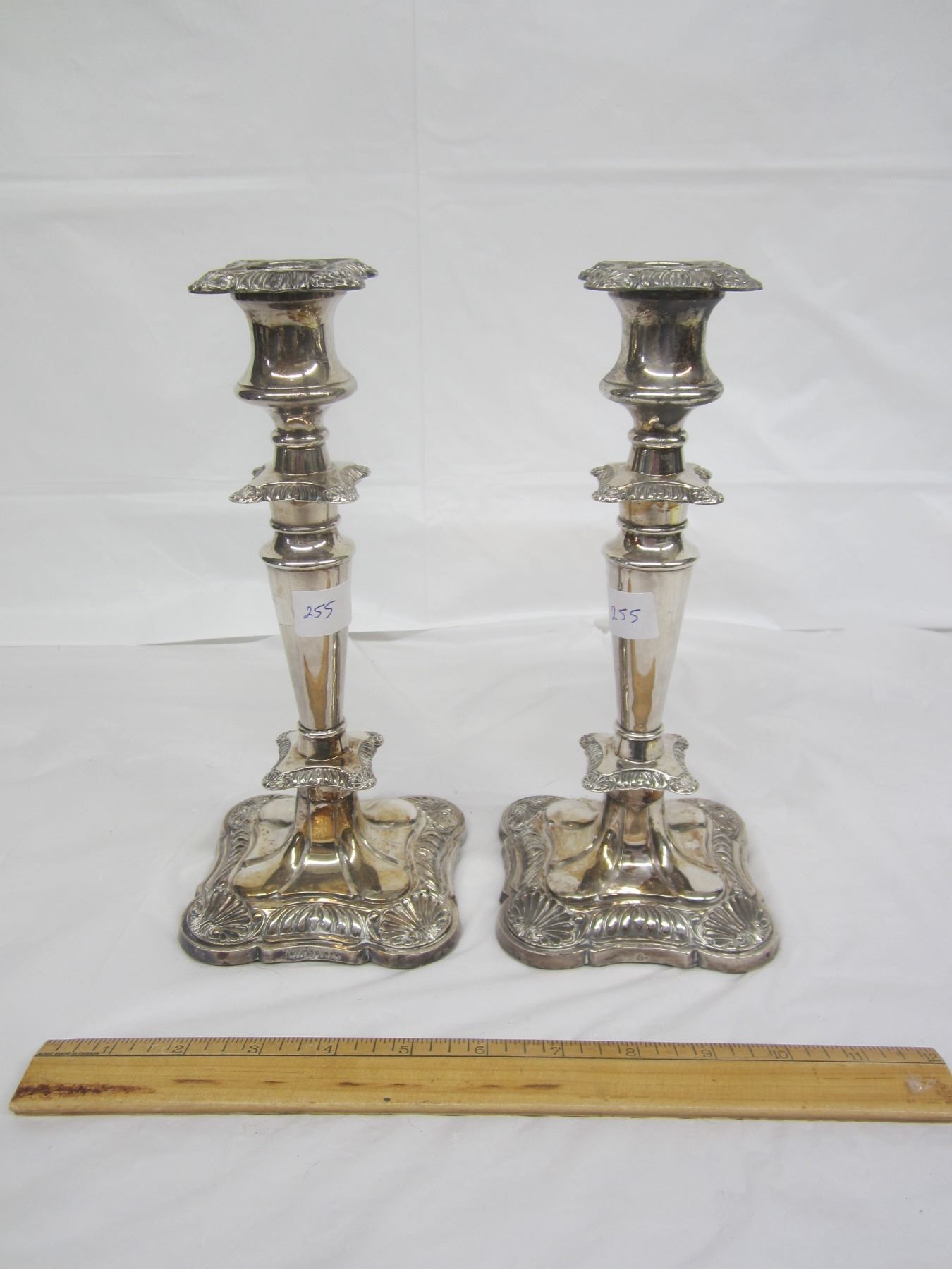 Matching Pair of Candlesticks Silver Plated 10 inches Tall