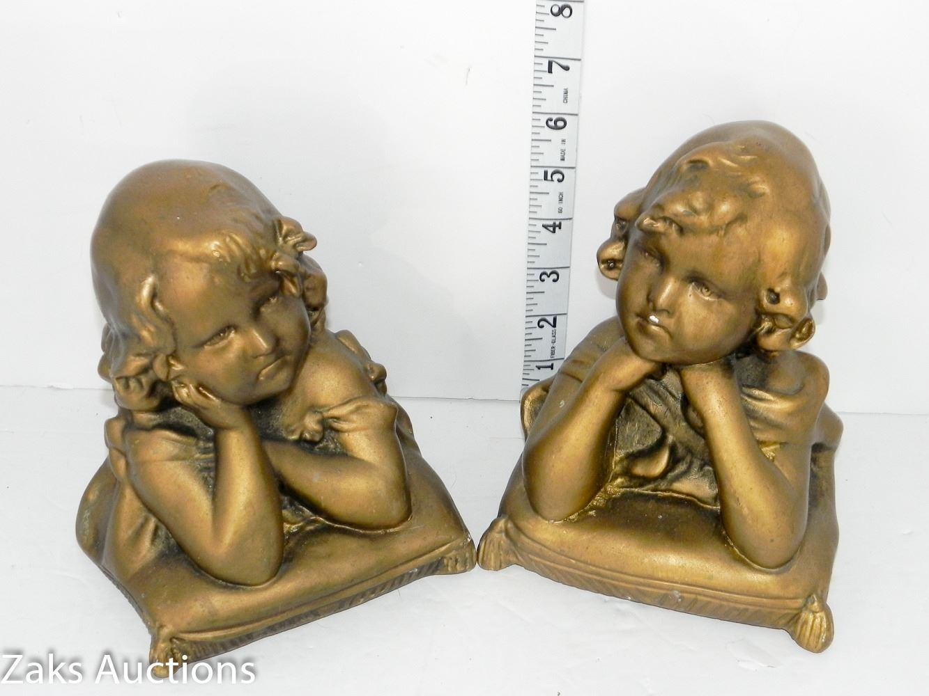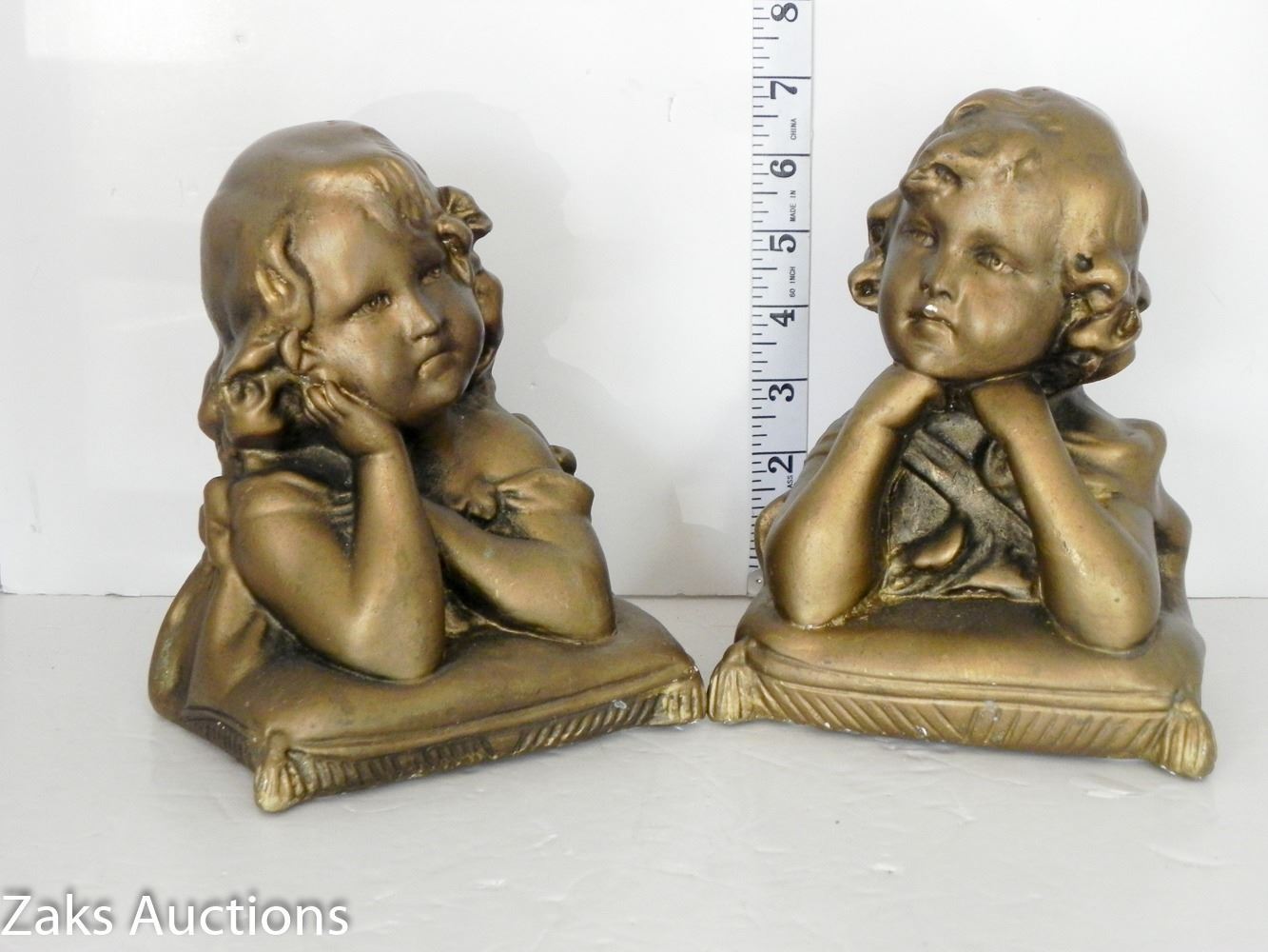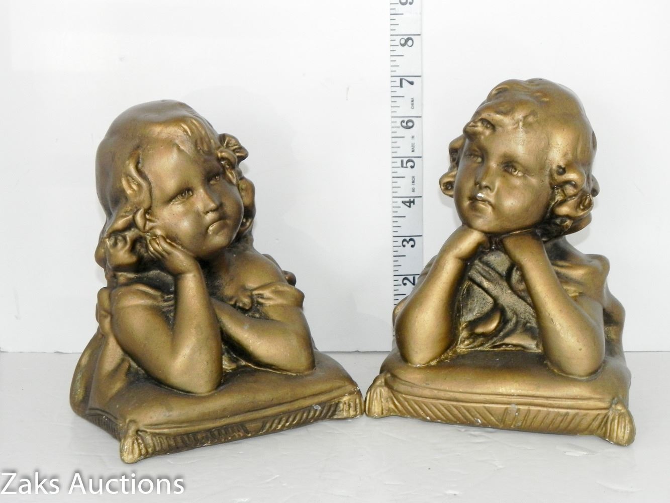 Matching Pair of Gold Ceramic/Plaster Book Ends. See pictures for condition