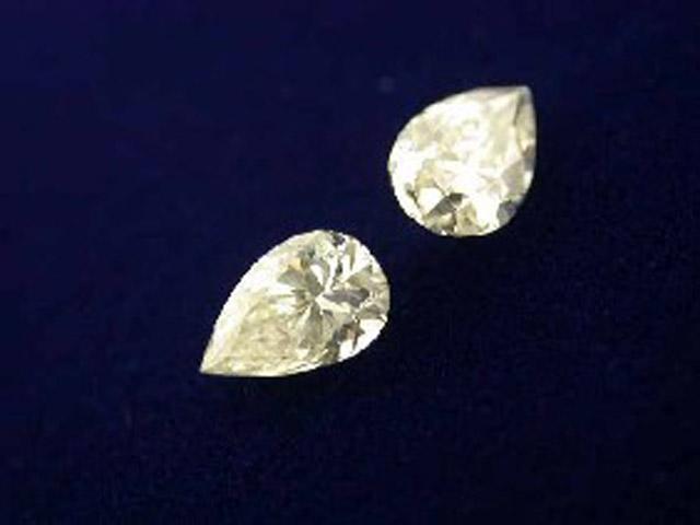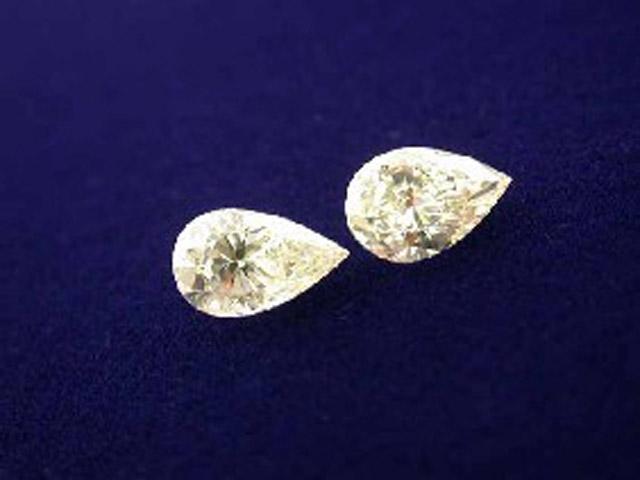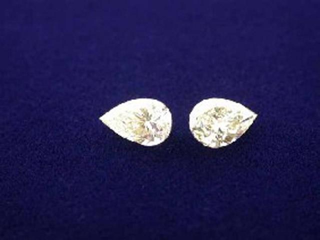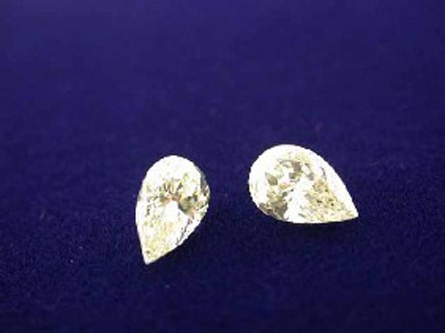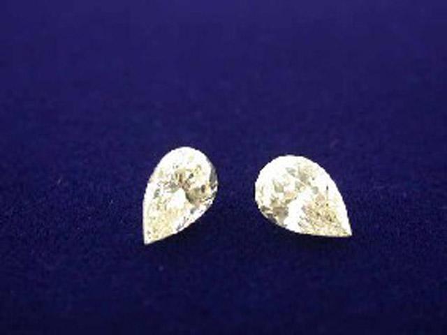 Matching Pear Shaped Diamonds with a Total Carat Weight of 0.92 in K Color and SI2 Clarity. The measurement is approximately 6.8mm x 4.2mm x 2.7mm