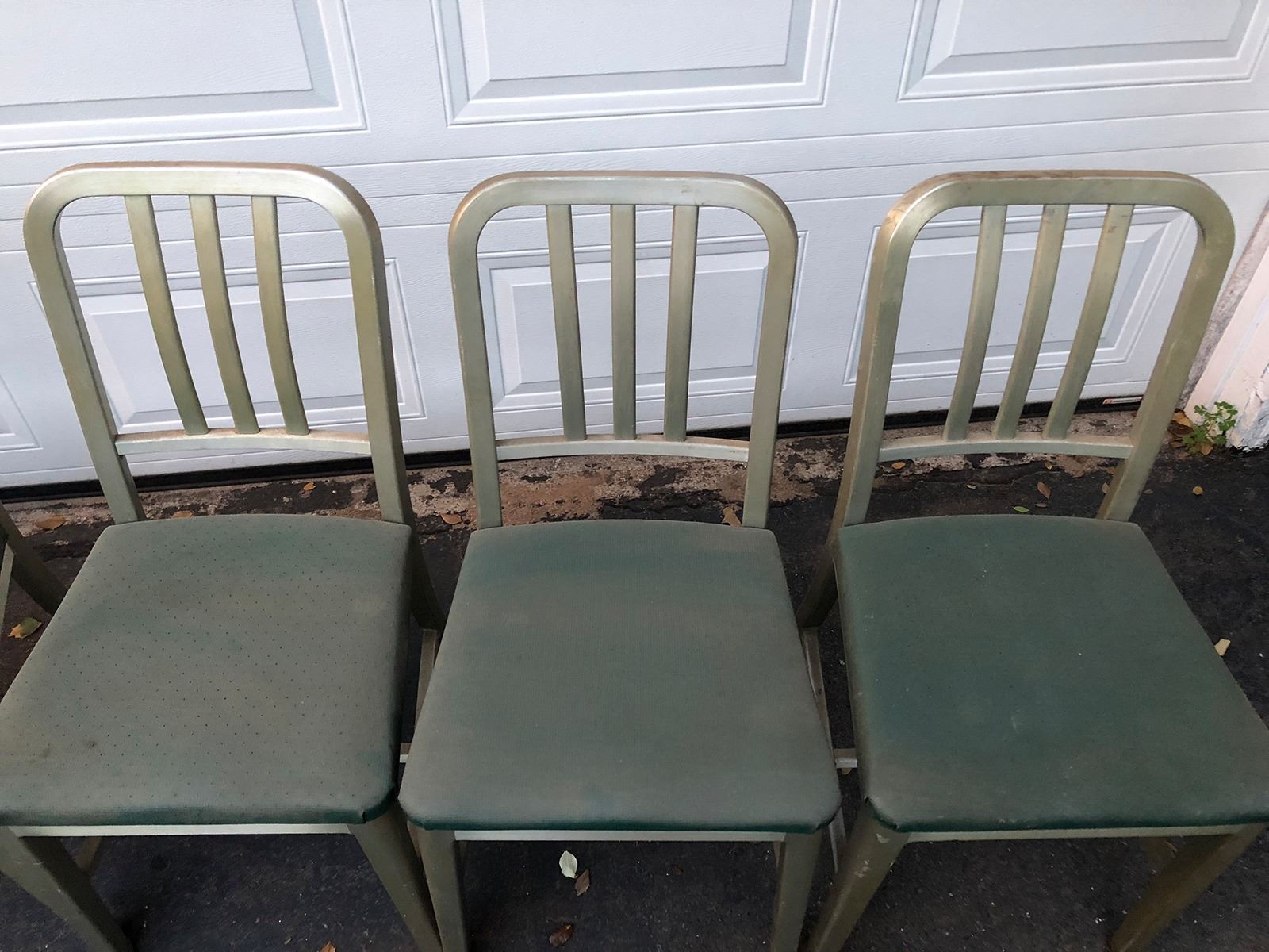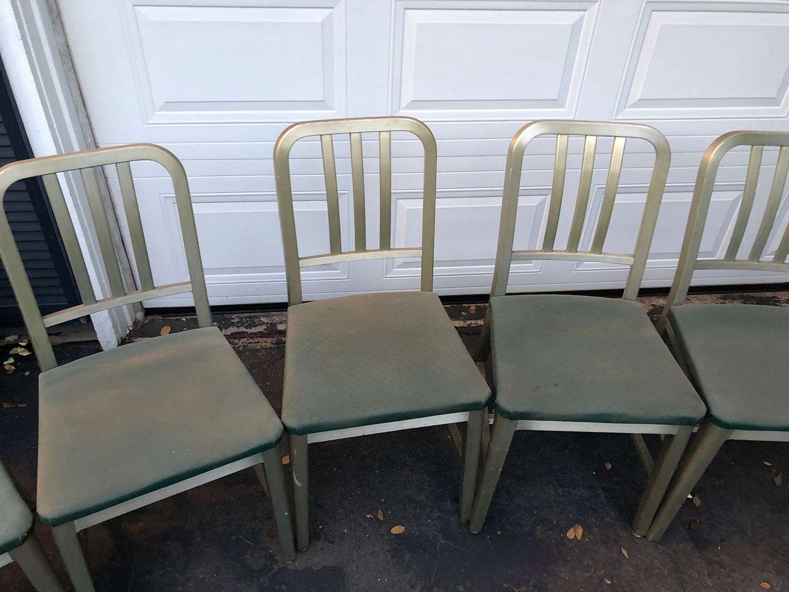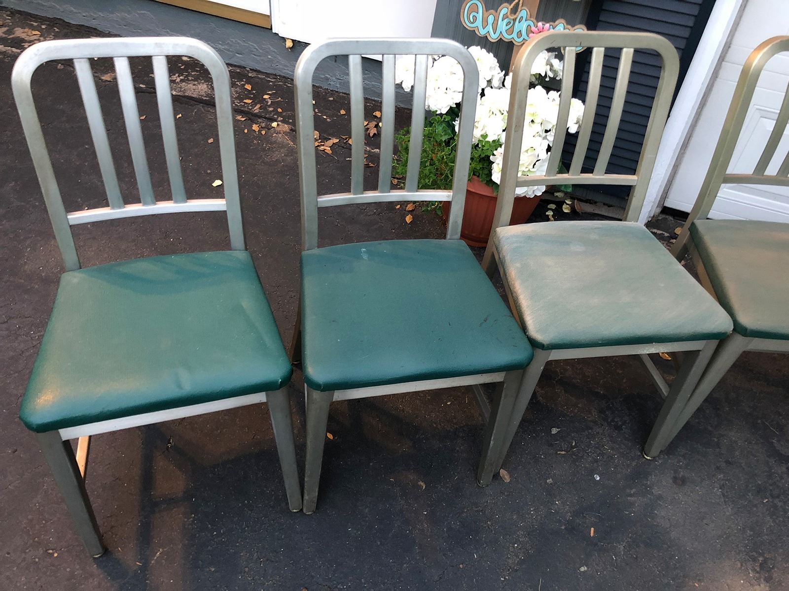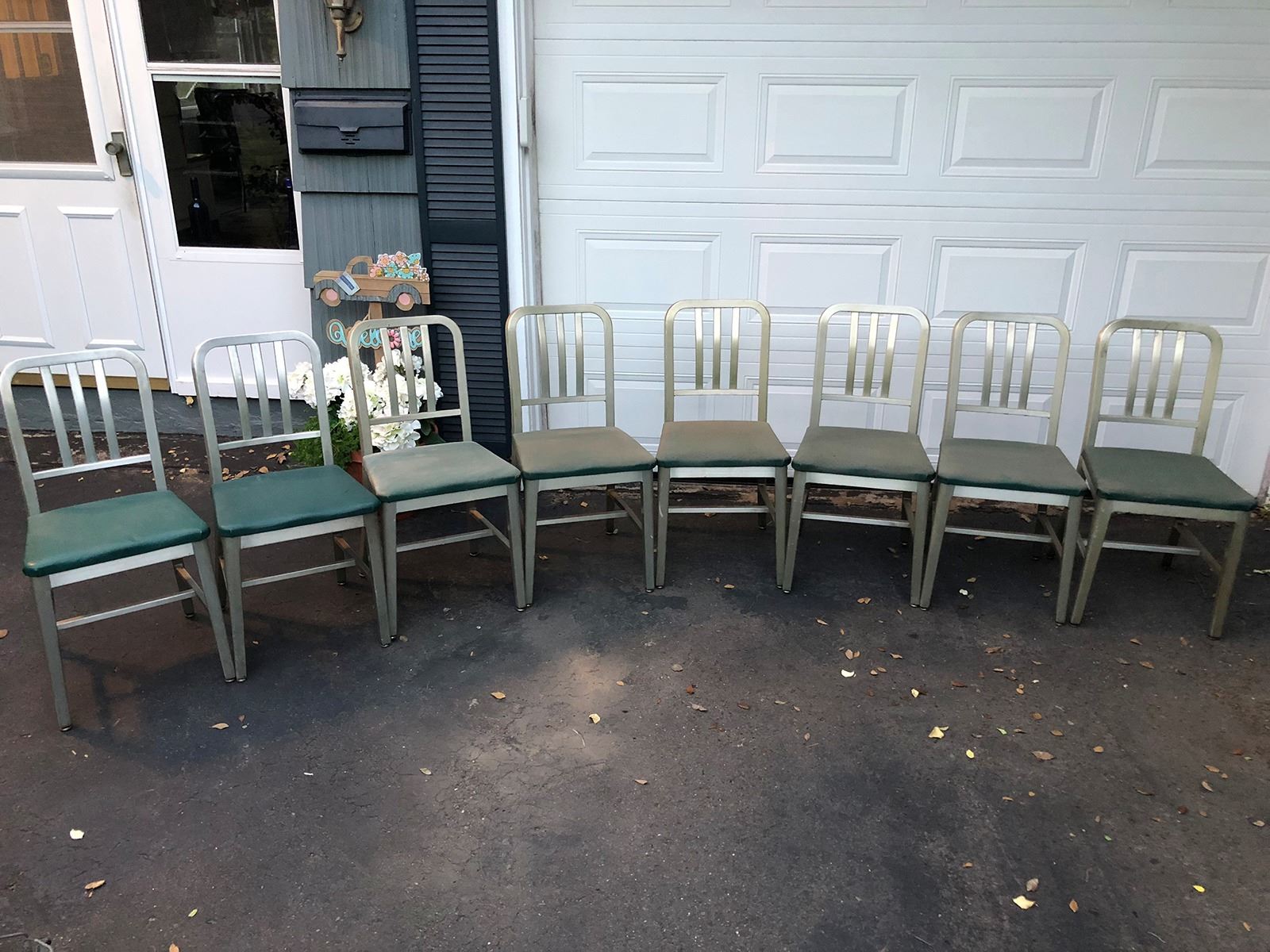 Matching set of 8 airplane aluminum Good Form chairs. Mid century modern, very rare to find a matching set of 8 chairs.