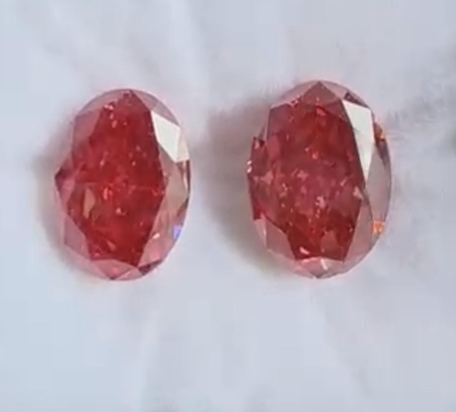 Matching Vivid Pink Diamond Pair IGI Certified.........weight 8.44 Cts size 14.35 x 10.41 x 7.04 & 8.09 Cts - 14.20 x 10.12 x 6.91 MM; Laser inscribed by IGI lab; Clarity VS; Its very rare to match diamond pair in colored diamonds; All our diamonds are guaranteed lab diamonds and come with certificate; We will mount free in 18k Gold ear studs( Choose any gold color white, yellow or rose)