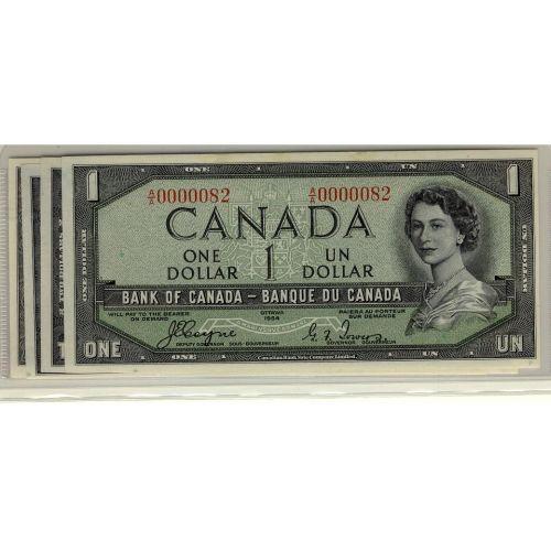 Matching numbered Devil's Face low serial set. Includes $1 to $10 #000082 all Coyne-Towers signautres. Grades vary from Unc to Gem unc