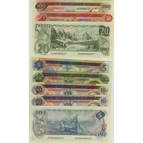 Matching serial "Numbered" set, 1969-1975 Multicoloured issues ser.#0000227.Grades vary from Unc to Gem Unc. 8 notes