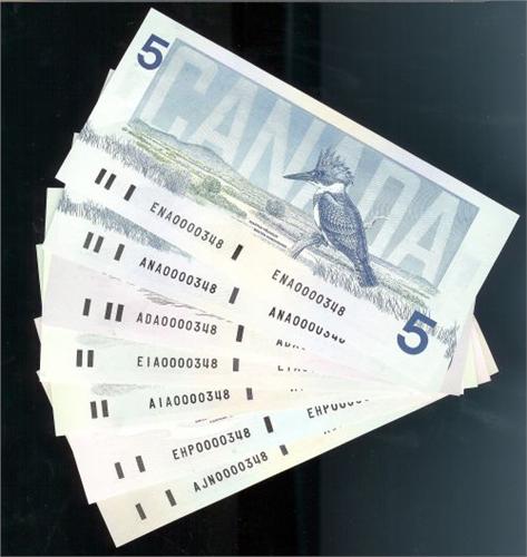 Matching serial numbered Birds set serial #0000348 1986 to 1991 icludes 7 notes $5 to $100 AU-UNC