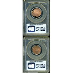 Mated Pair of 1998 1C Lincoln Cents MS64 Red and MS6 <B>Mated Pair of 1998 1C Lincoln Cents MS64 Red and MS65 Red PCGS.</B></I> Coin #1 (MS64 Red) was struck normally but did not fully eject from the dies. It was struck a second time, 75% off center toward 7 o'clock at 11 o'clock relative to the first strike, indented on the reverse by Coin #2, which is broadstruck, wavy, and has a 25% brockage (from Coin #1) on the obverse centered at 7 o'clock. 2 Coins <BR><BR><B>Important notice:</B> Heritage usually auctions material at the rate of 200-250 lots per hour. On some occasions eBay Live bid software or the Internet may not be able to keep up with the pace of the auction. We recommend placing a realistic absentee bid now as insurance to avoid disappointment. Occasionally the auctioneer may eliminate or reject an eBay Live bid, and the auctioneer may also reopen a lot after the close of the eBay live bidding (usually because we missed an audience bid), and may reject your bid even if it shows you as the winning bidder. By bidding via eBay Live, you agree that Heritage may award the lot to another bidder at its sole discretion under the circumstances described above or any other reasonable circumstances. Since eBay bids are not shown to us until we open the lot on the floor, we treat those bids just like floor bids. In most cases the floor responds before the eBay bid is presented to us, due to Internet lag time, so for consistency we have made it a policy that floor bids are always considered first over tie eBay live bids. Also please note that all Heritage lots purchased through eBay Live carry a 20% Buyer's Premium. Please make sure you read the Terms and Conditions before you bid. This lot is being auctioned in conjunction with a live floor auction by Heritage Galleries & Auctioneers. All final auction and invoice information will be supplied by Heritage Galleries & Auctioneers, and all other information should be considered preliminary. Lot:8020
