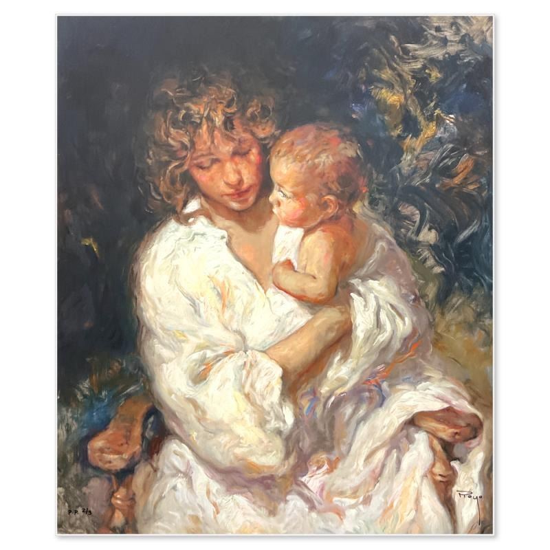 "Maternidad" is a limited edition publisher's proof on clay-board by Royo, numbered 2/3 and hand signed by the artist. Includes Letter of Authenticity. Measures approx. 29" x 24" (image).