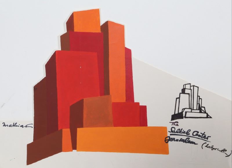 Mathias Goeritz, The Saltiel Center Jerusalem (Labyrinth), Acrylic and Marker Drawing