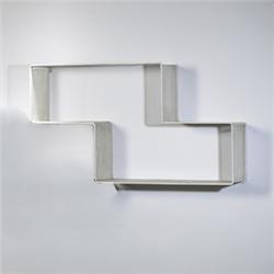 Mathieu Mategot Dedal shelf Atelier Mategot France, 1950s perforated, folded and enameled metal 36.5"w x 7.75"d x 20"h Literature: Mathieu Mategot, Jousse Entreprise, Photographies d'Archives 1945-1960, fig. 174