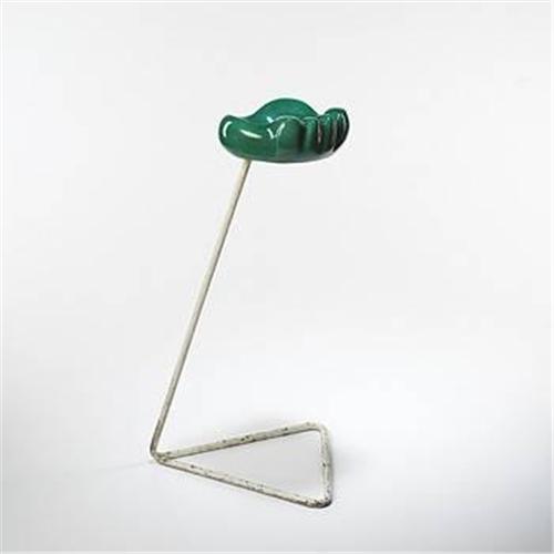 Mathieu Mategot and Georges Jouve ash stand Ateliers Mategot/Georges Jouve Studio France, 1951 enameled steel, glazed stoneware 11.5"w x 13"d x 24"h Incised artist's cipher to underside of ceramic. <BR>Literature: Mathieu Mategot, Jousse and Mondineu, pg. 89