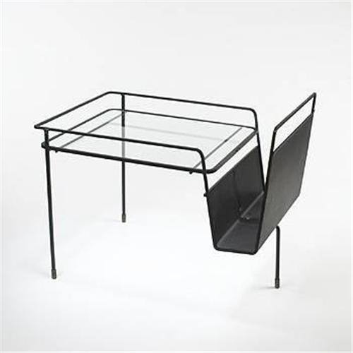 Mathieu Mategot occasional table with magazine rack Ateliers Mategot France, c. 1950 perforated and enameled metal, glass 16.25"w x 24"d x 19"h