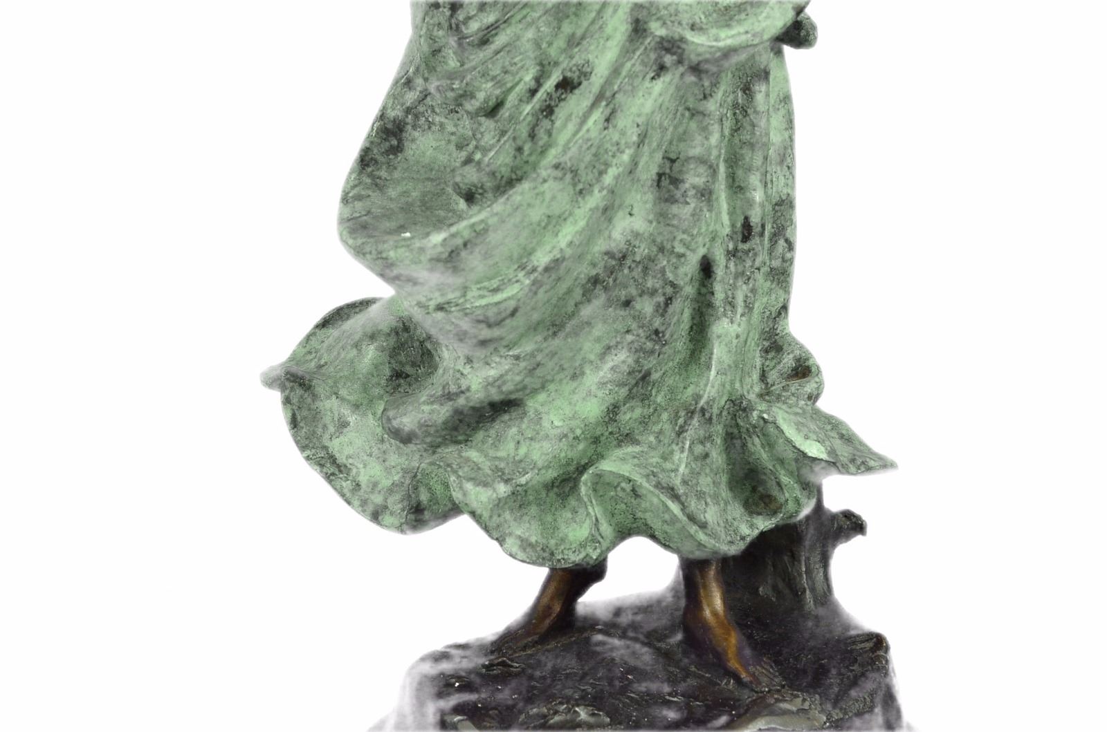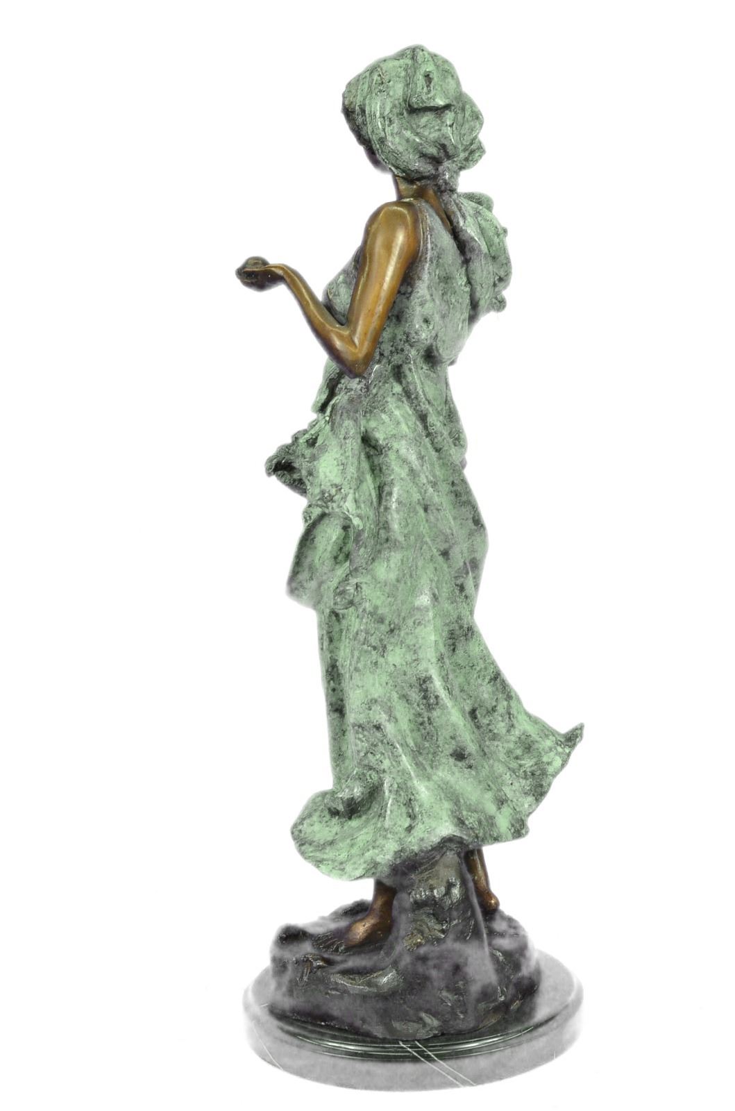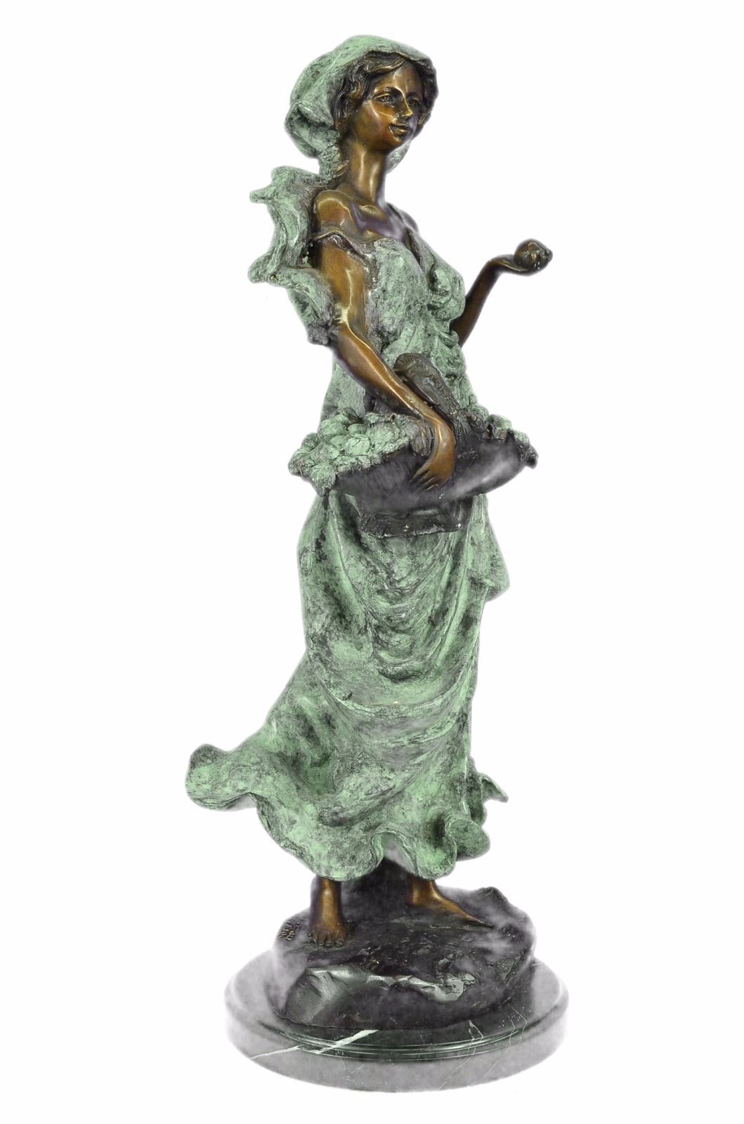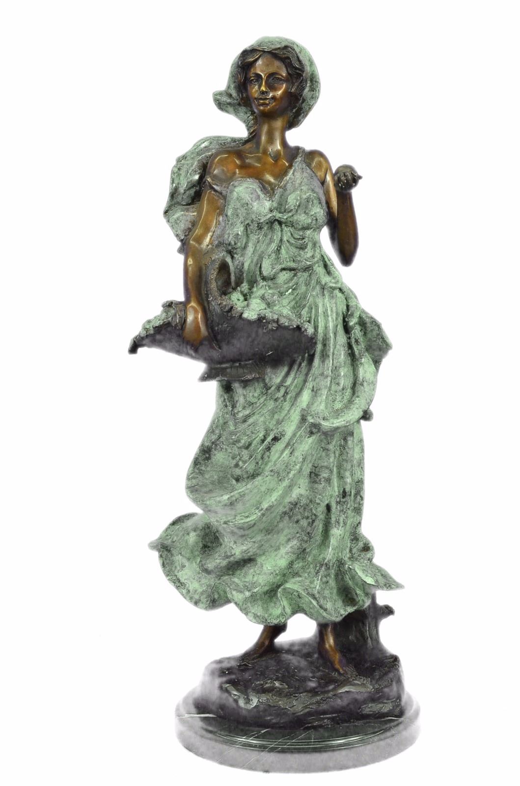 On A Warm Spring Day, She Strolls Through The Garden, Picking Freshly Bloomed Flowers And Fruit. Her Bare Feet Sinks Into The Soft Dirt And She Feels The Breeze Graze Her Bare Shoulders. Her Long Goddess Dress Flows And Dusts At The Ground. She Cradles A Basket, Which Is Filled With The Life She Has Collected. She Is A Two-Toned Patina, Her Skin Brown And The Dress Grey. Sculpture Was Cast Using The "Lost Wax Method" And Mounted On A Marble Base. Bronze Dimensions With Marble Base: Height 24 X Width 10 inches. Weight: 33 Lbs.