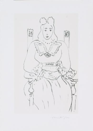 Notes: Limited edtion lithograph published by Maeght Editeur in Paris in 1995 with the permission of the Estate of Henri Matisse titled "Femme Assise". Each print is shows a plate signature of the artist and measures 18 x 13 inches. Printed by ARTE, Paris, France.
