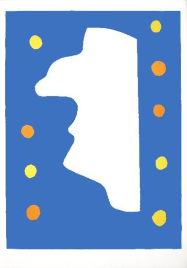 Notes: This image titled "Monsieur Loyal" is from a portfolio of twenty works of art originally created by Matisse from his cut-outs (decoupages) and collages series towards the end of his life. This lithography was redrawn and printed on the presses of Art-Lithographies in Paris with the authorization and under the supervision of Monsieur Georges Matisse, representing the Estate of Henri Matisse.