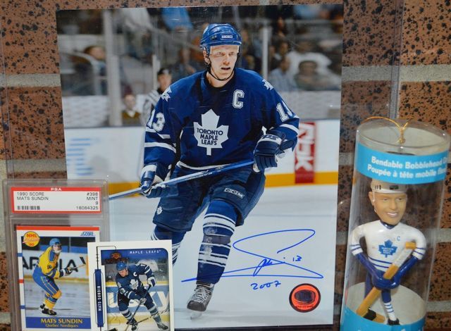 Mats Sundin Collection- Signed 8x10 Photo with 2 Hockey Cards & Bendable Bobblehead Doll