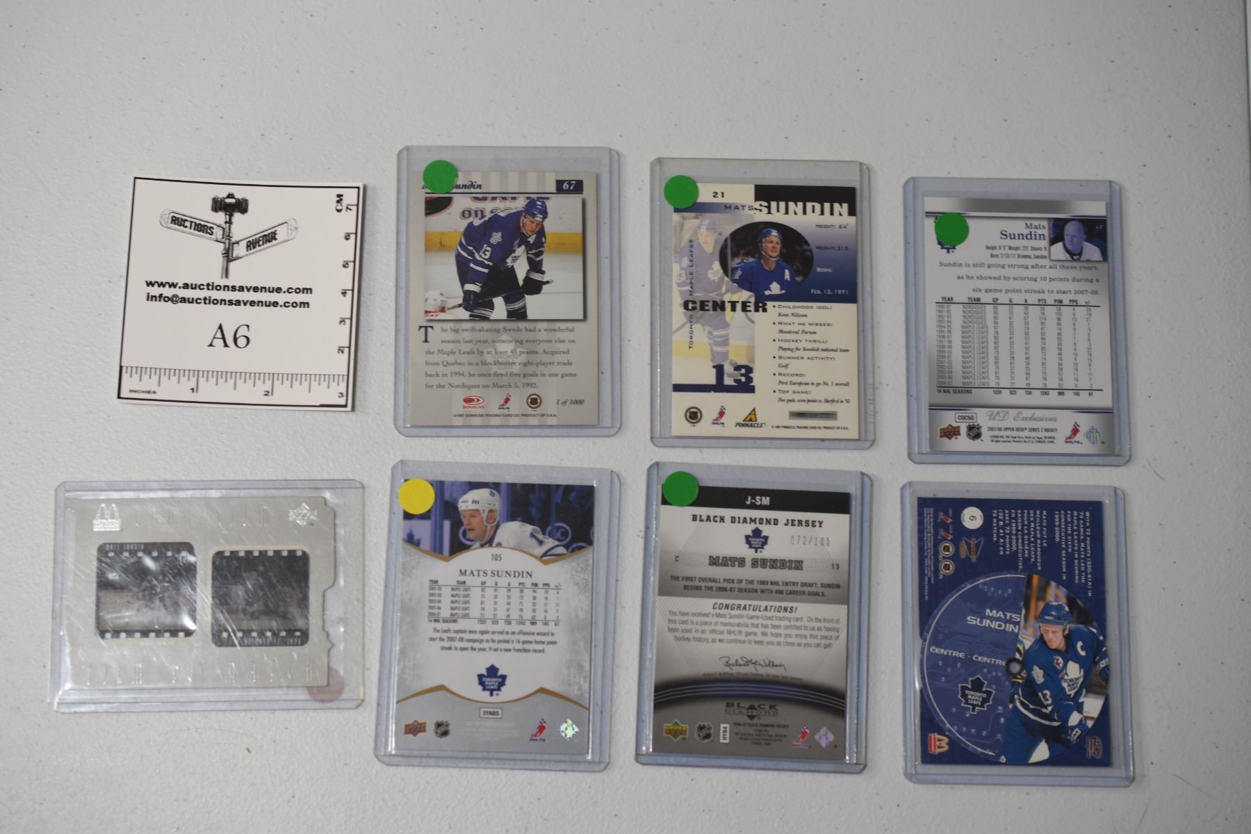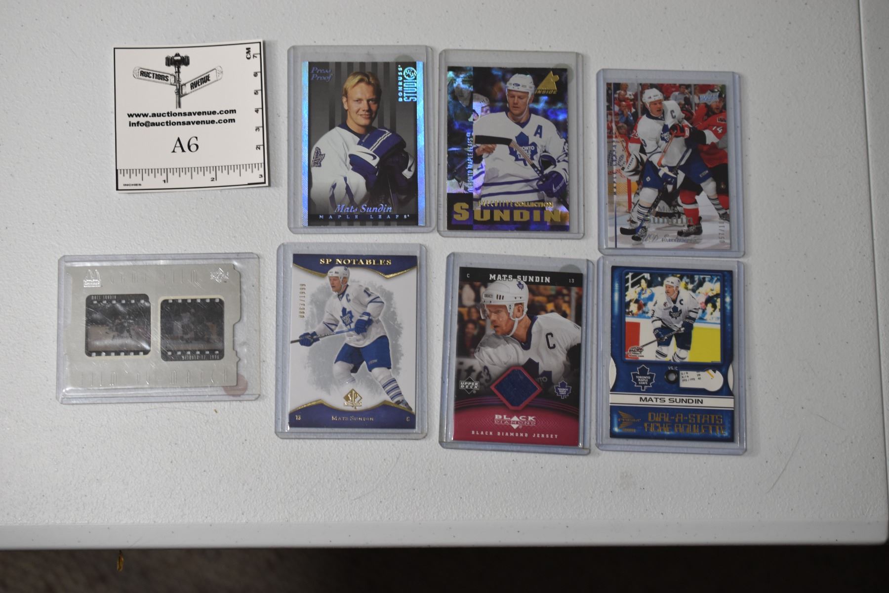 7 Mats Sundin Cards including Rare Press Proof /1000, Executive Collection, 07-08 Exclusives /1000, Dial-a-Stats Black Diamond Jersey, SP Notable /1999, McDonald's Game Film F10