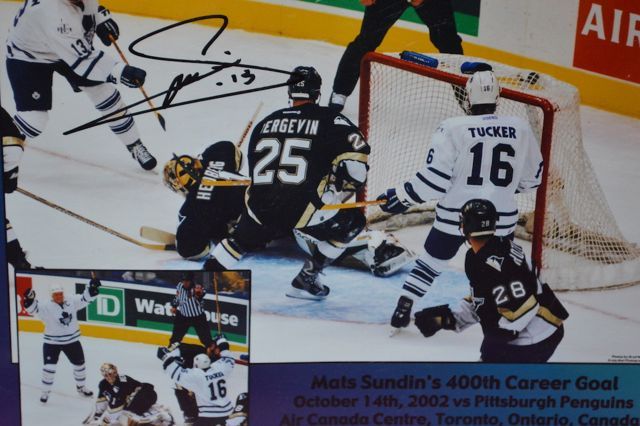 Mats Sundin's 400th Career Goal Photo from Oct 14th, 2002 vs Pittsburgh Penguins at the Air Canada Centre, Toronto, Ontario- Hand Signed by Mats Sundin