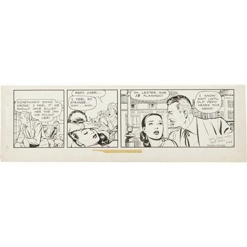 <B>Matt Baker - Flamingo Daily Comic Strip #118 Original Art, dated 6-25-52 (Phoenix Features, 1952).</B></I> Matt Baker's figure work is very polished in this melodramatic masterwork. The image area of this daily measures 19" x 5", and the art is in Excellent condition. <BR><BR><b>Shipping:</b> Flat Material, Large (<a target="_blank" href="http://www.heritageauctions.com/common/shipping.php">view shipping information</a>)