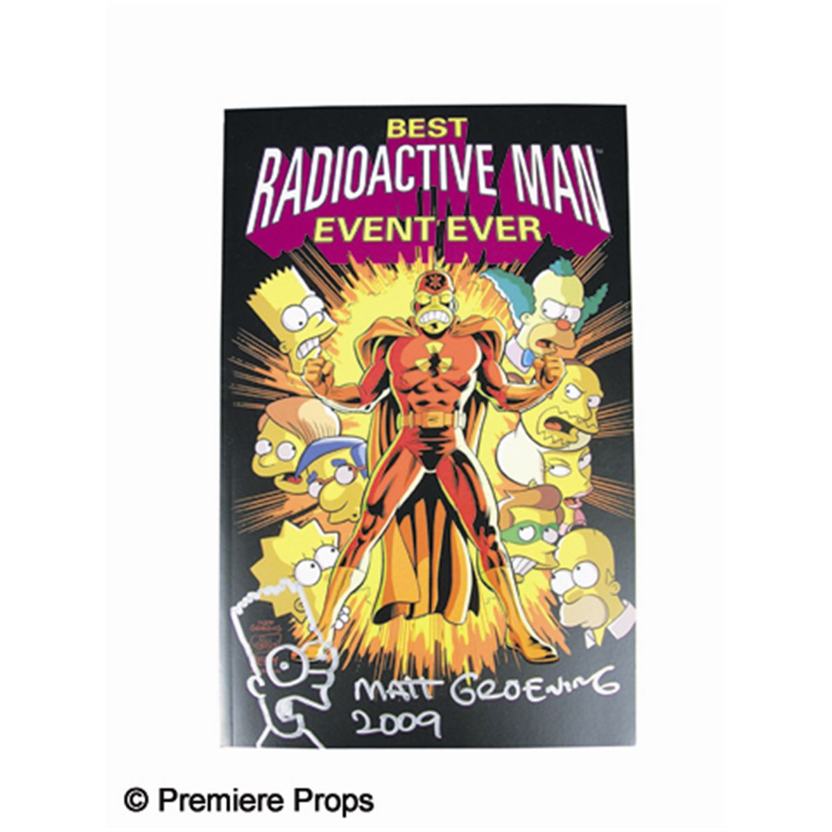 Comic book of the Best Radioactive Event Ever, signed on the cover by Matt Groening, who adds a drawing of Bart Simpson. (10.5x6.5)