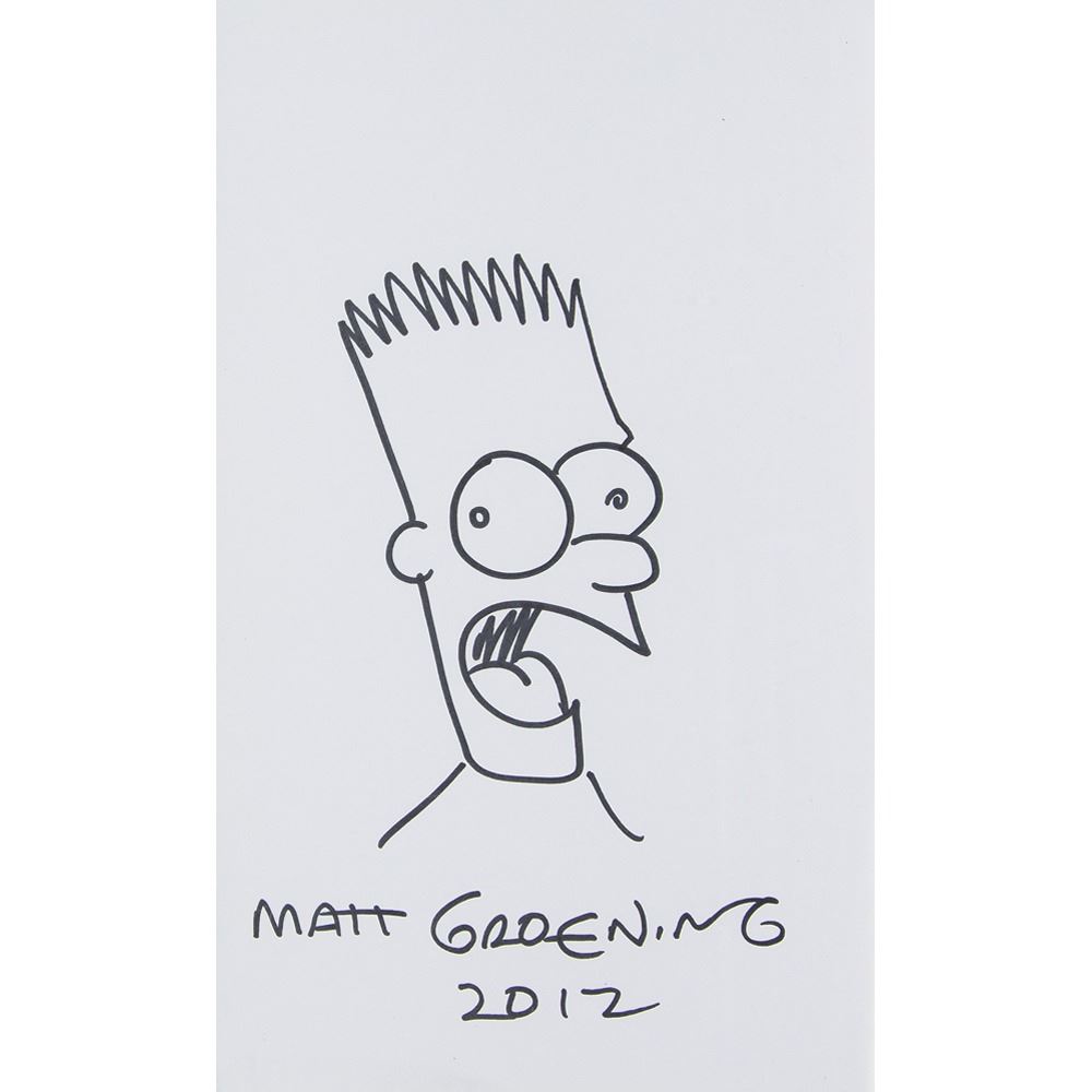 Signed book: Radioactive Man: Radioactive Repository Volume One. First edition. NY: HarperCollins, 2012. Hardcover with mini dust jacket, 7 x 10.5, 272 pages. Groening has drawn a large black felt tip Simpsons sketch opposite the title page and signed below, "Matt Groening, 2012." In fine condition, with soiling to front board.
