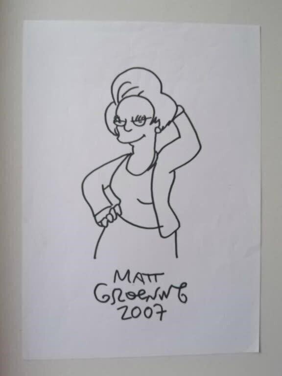 Drawn and signed by the creator of the Simpsons Matt Groening.
