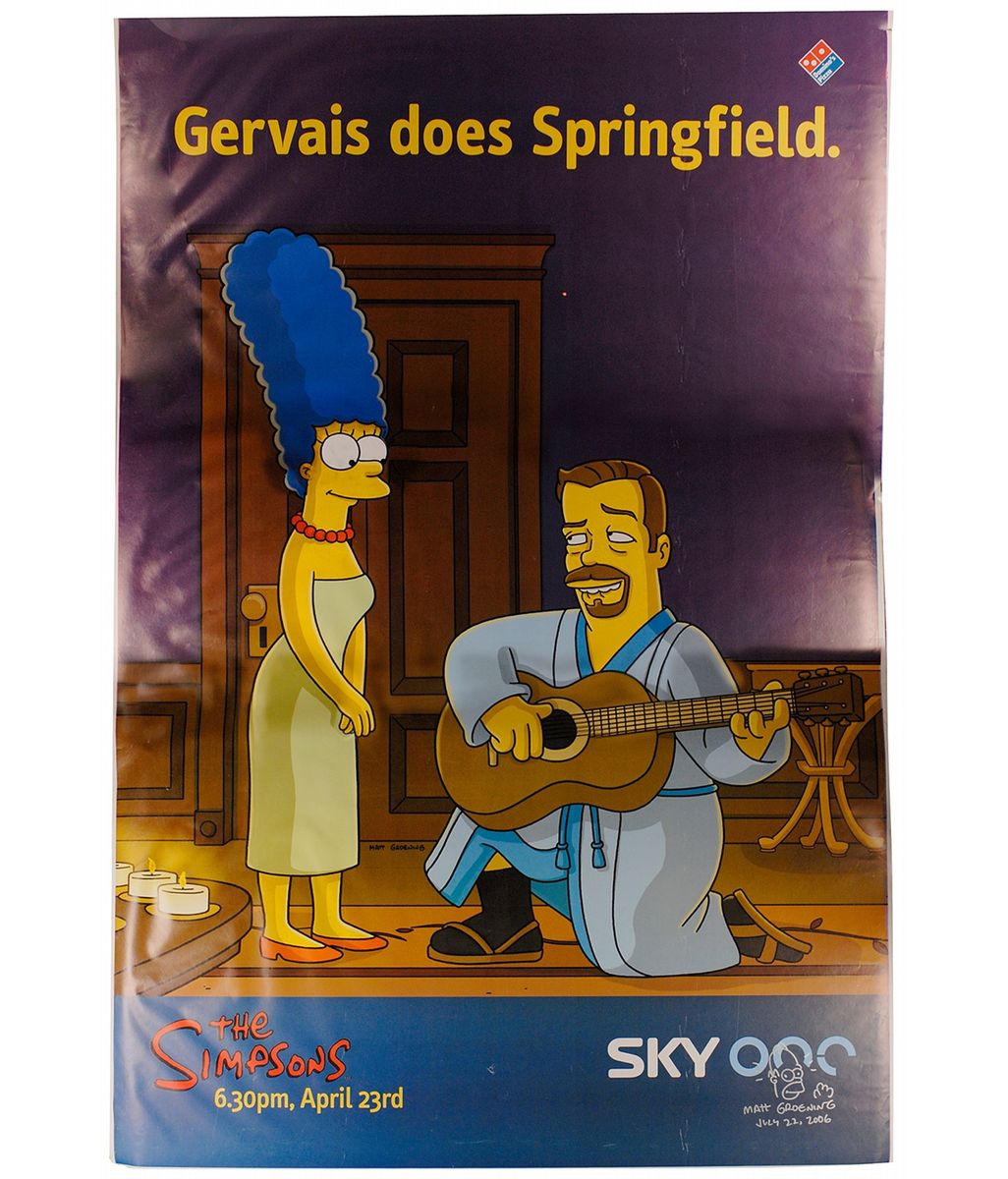 Color 48 x 72 bus shelter advertising poster for the Simpsons with an original silver ink sketch of Homer Simpson in the lower right corner, signed in silver ink, “Matt Groening, July 22, 2006.” Rolled and in fine condition, with scattered marks, creases, and border dings.