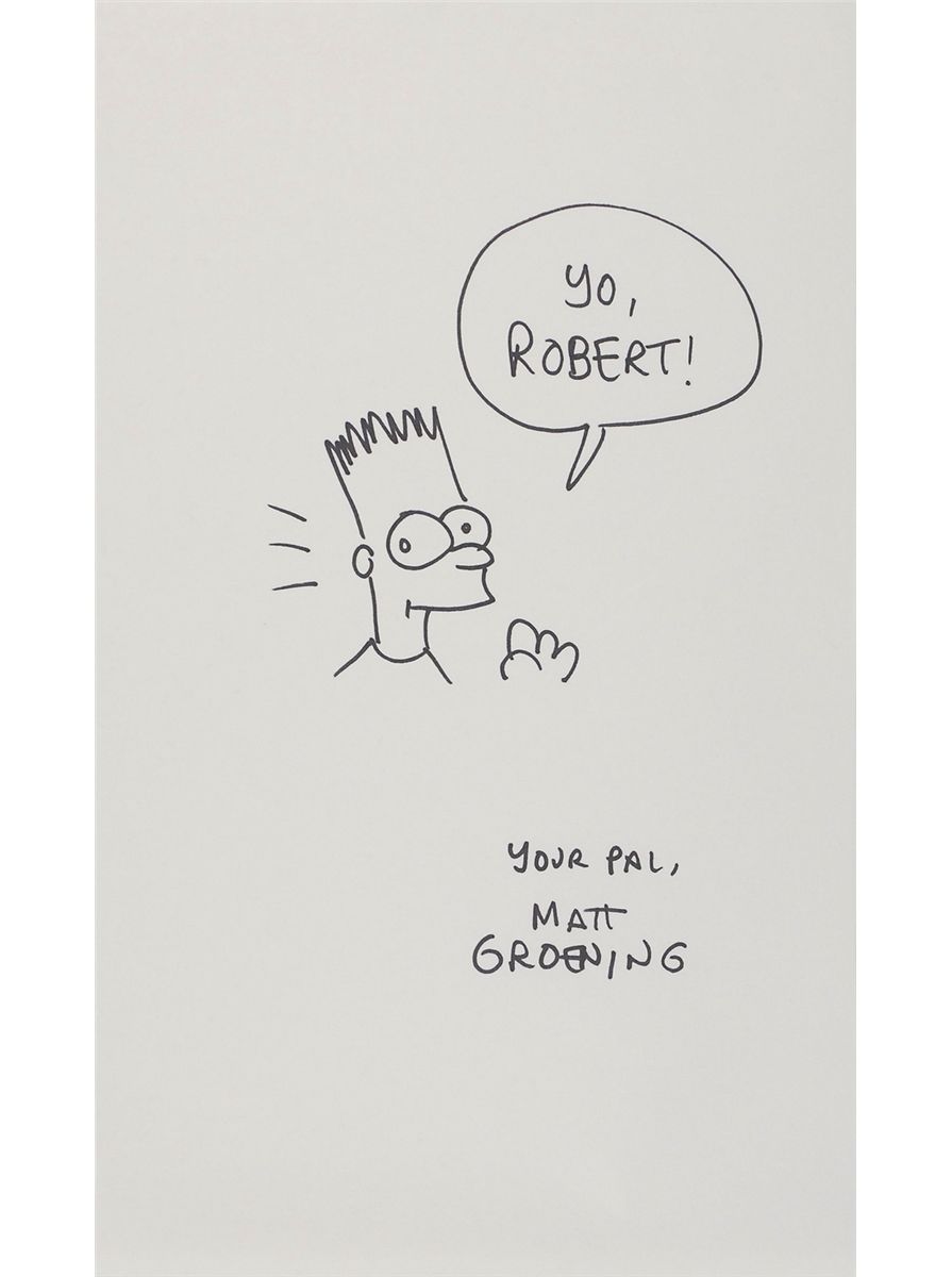 Large original signed and inscribed felt tip sketch of Bart Simpson on an off-white 10 x 17 sheet, signed and inscribed, “Yo, Robert! Your pal, Matt Groening.” In fine condition.