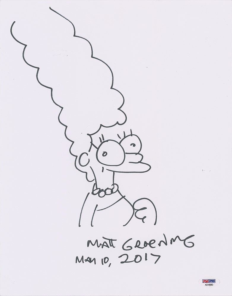 Wonderful original felt tip sketch of Marge Simpson on a white 11 x 14 cardstock sheet, signed below in black felt tip, "Matt Groening, May 10, 2017." In very fine condition. Accompanied by a certificate of authenticity from PSA/DNA.