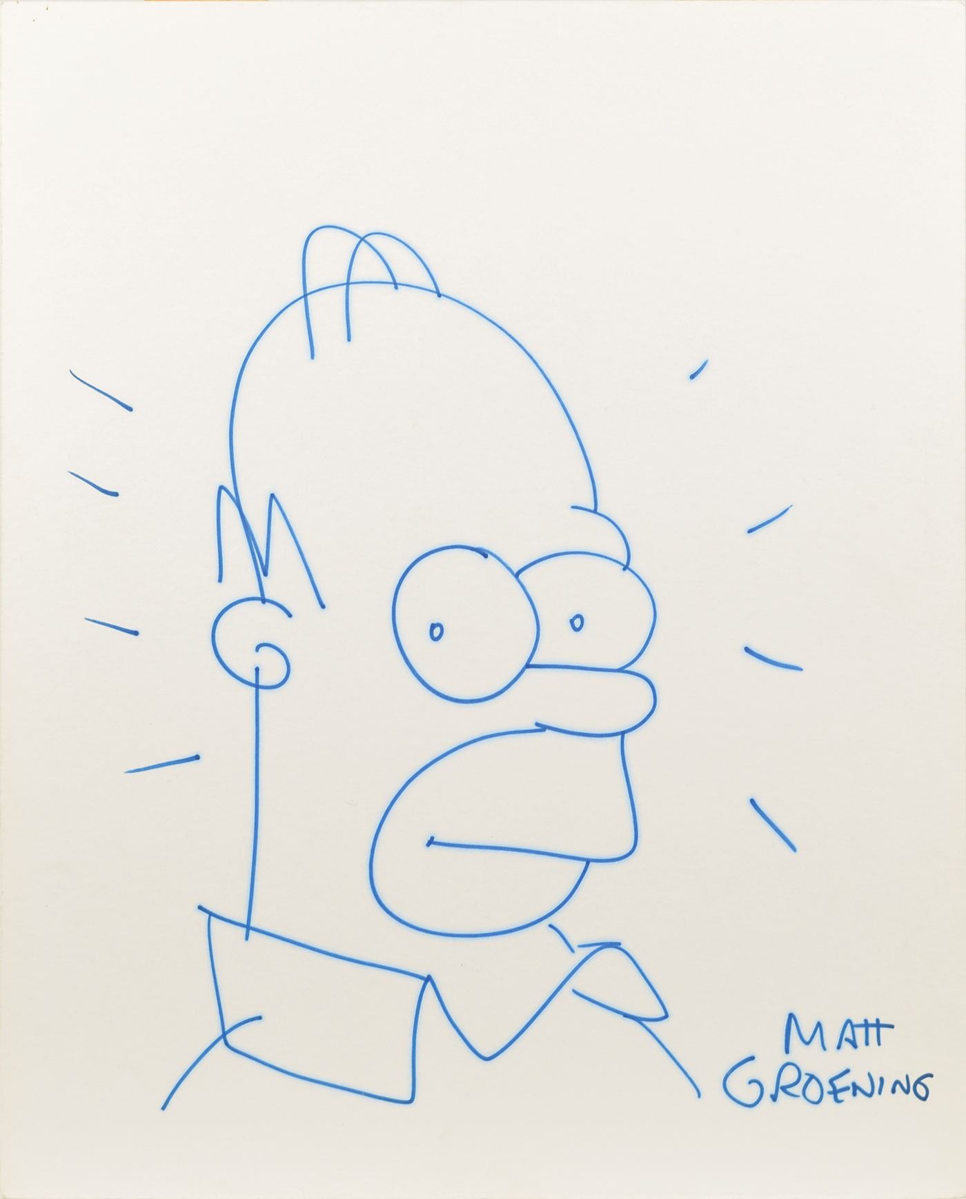 Stupendous original felt tip sketch by Matt Groening on a white 16 x 20 cardstock sheet, which shows Homer Simpson with a decidedly alert expression, signed below by Groening. In fine condition.