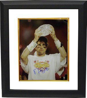Matt Leinart played college football at Southern California, leading them to an AP national championship in 2003, a BCS national championship in 2004, and an appearance in the BCS National Championship game in 2005. In 2004, his junior year at USC, he won the Heisman Trophy. He also won the inaugural Manning Award for college quarterbacks in the same season. Matt Leinart has hand autographed this USC Trojans 16x20 Color Photo holding up trophy. Custom White Mat and Premium Black Frame as shown. Leinart Hologram and Certificate of Authenticity from Athlon Sports.