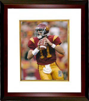 Matt Leinart played college football at Southern California, leading them to an AP national championship in 2003, a BCS national championship in 2004, and an appearance in the BCS National Championship game in 2005. In 2004, his junior year at USC, he won the Heisman Trophy. He also won the inaugural Manning Award for college quarterbacks in the same season. Matt Leinart has hand autographed this USC Trojans 8x10 Color Photo with 04 Heisman Inscription. Custom White Mat and Premium Mahogany Frame as shown. Leinart Hologram and Certificate of Authenticity from Athlon Sports.