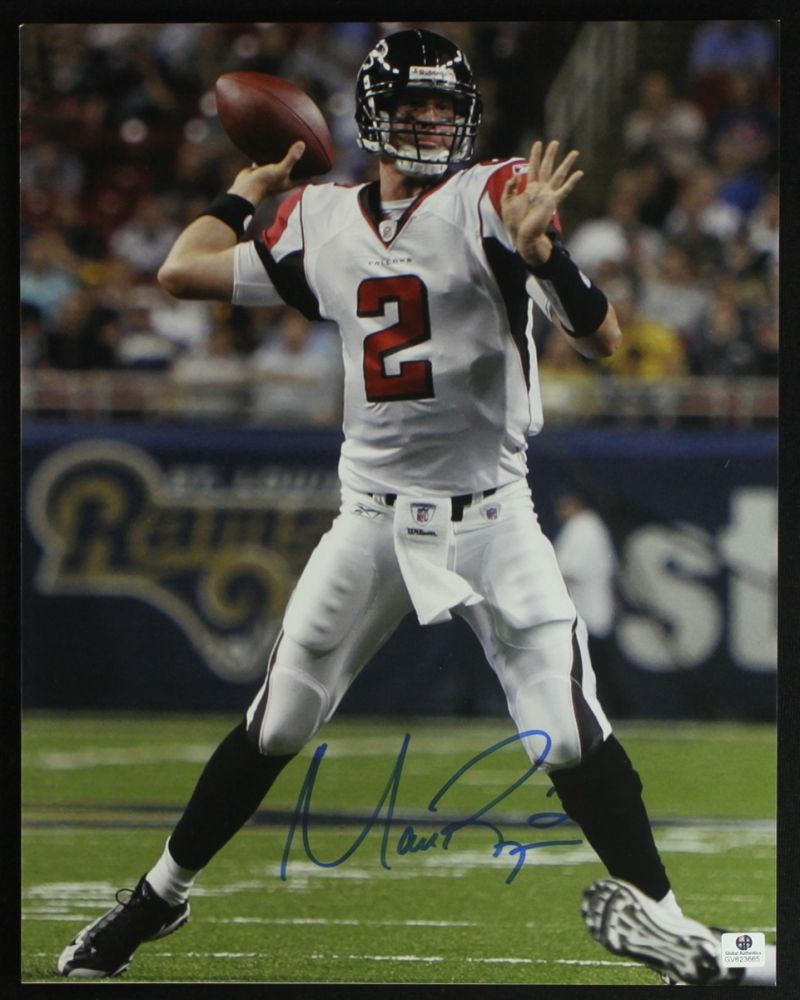 Hand-signed in blue felt-tip pen by Matt Ryan. Autograph includes official Global Authentics (GA) hologram for authenticity purposes.